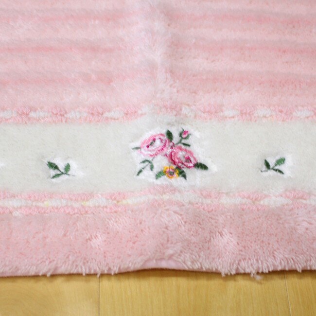 刺繍入りで洗える滑り止め機能付きのローズ柄が可愛らしいカラフルバスマットです。